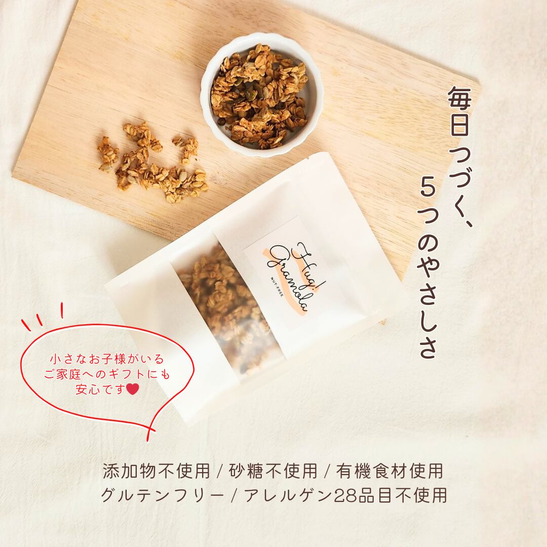 ナッツを使わず、ひまわりの種・かぼちゃの種・レンズ豆などの自然素材で“香ばしさ”と“食感”を出しました。